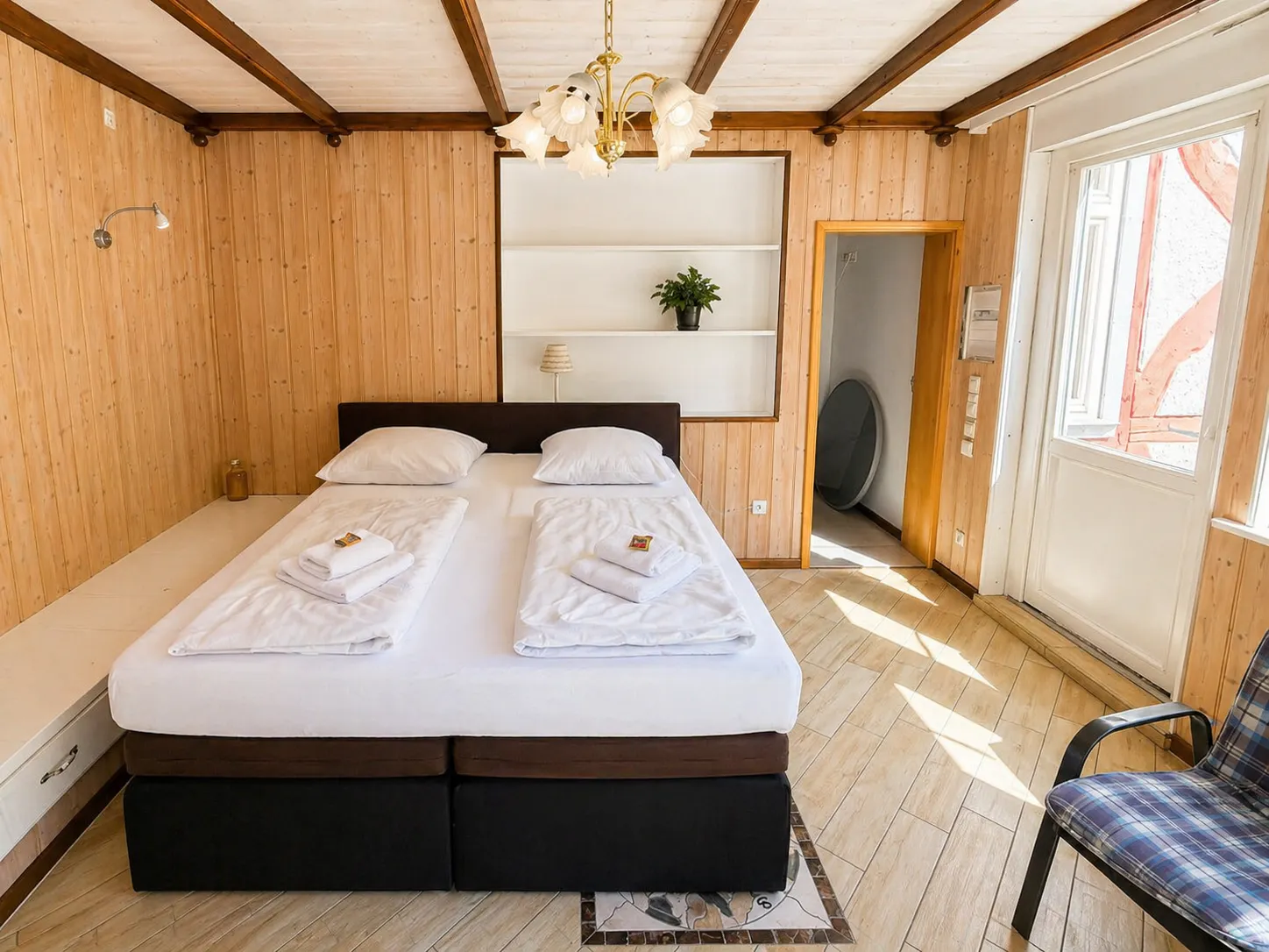 Das Highlight ist die eigene, große Terrasse, auf der Sie die Ruhe des Waldes und das Rauschen der Holtemme erleben und den Tag bei frischer Bergluft ausklingen lassen können. Der großzügige Wohn- und Schlafbereich lädt zum Entspannen ein.
